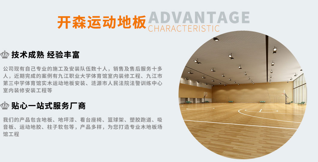 九江開(kāi)森地板有限公司位于美麗的江西省九江市。地板原材料采自于吉林,黑龍江等長(zhǎng)白山地區(qū)自家承包林場(chǎng)的優(yōu)質(zhì)木料,主,輔龍骨采用美國(guó)進(jìn)口花旗松為原料。開(kāi)森地板擁有雄厚的科技和研發(fā)實(shí)力,匯集了一批優(yōu)異工程師和專(zhuān)業(yè)的安裝團(tuán)隊(duì),引進(jìn)的進(jìn)口地板安裝設(shè)備。本公司對(duì)外承攬大、中、小體育場(chǎng)館的運(yùn)動(dòng)木地板安裝工程。做到質(zhì)量保證、價(jià)格合理。在行業(yè)內(nèi)擁有較高的知名度,實(shí)力迎合市場(chǎng)!
